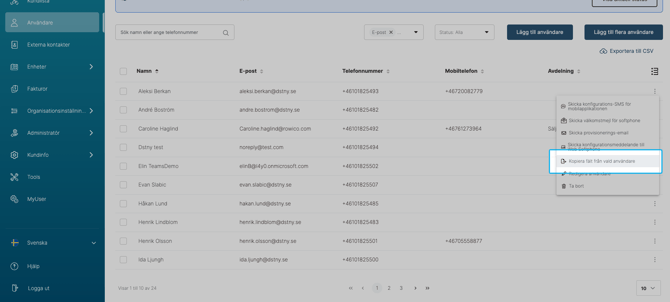 - Den valda användarens inställningar används nu som mall för andra användare