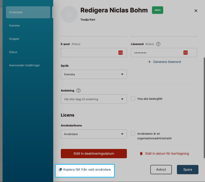 - Klicka på Copy fields from selected user
