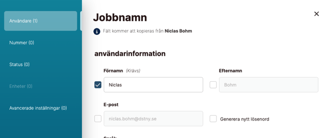 - Markerad checkbox: fältet uppdateras för alla valda användare