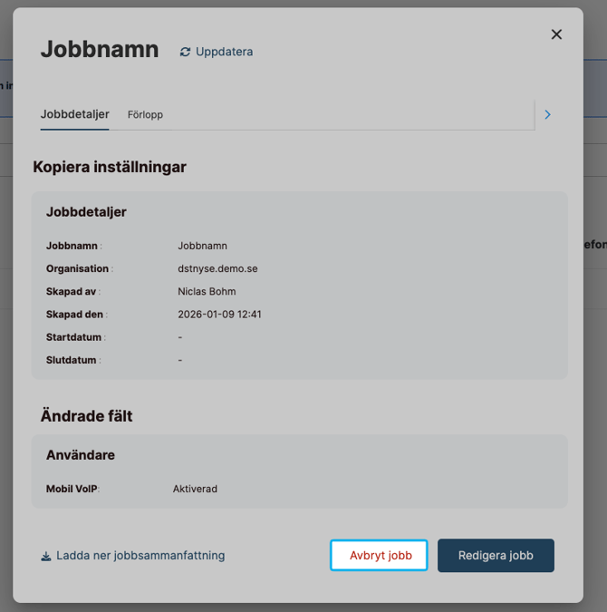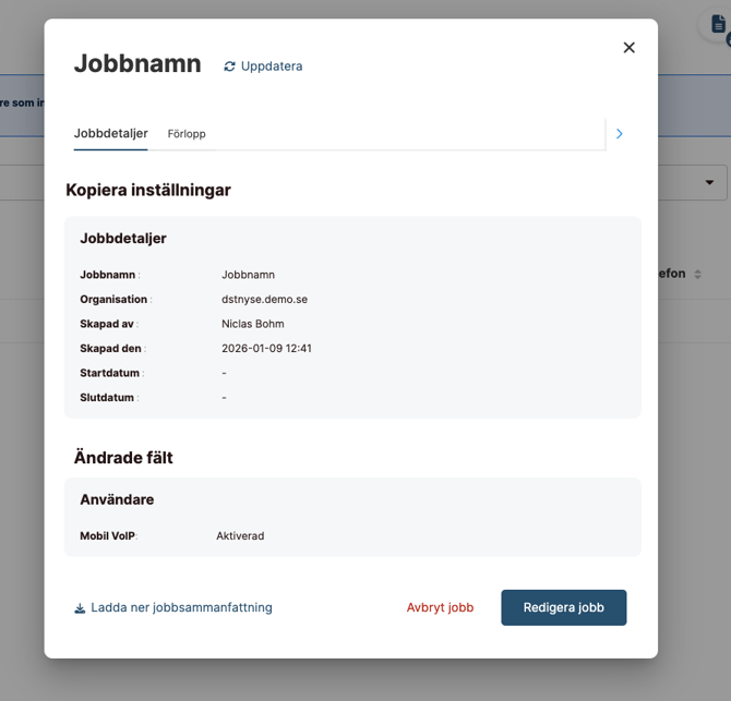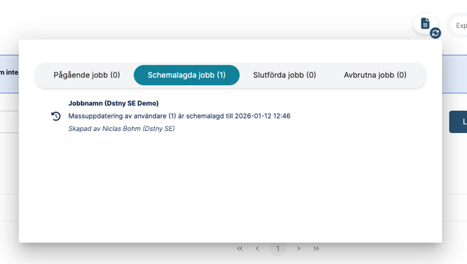 I Global Jobs Menu får du en samlad översikt över alla Bulk User Edit‑jobb.