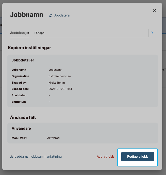 Redigera ett jobb