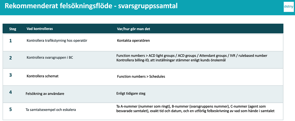 Bilden visar hur samtalsflöden går för att underlätta och förstå felsökningen och i vilken ände man ska börja.